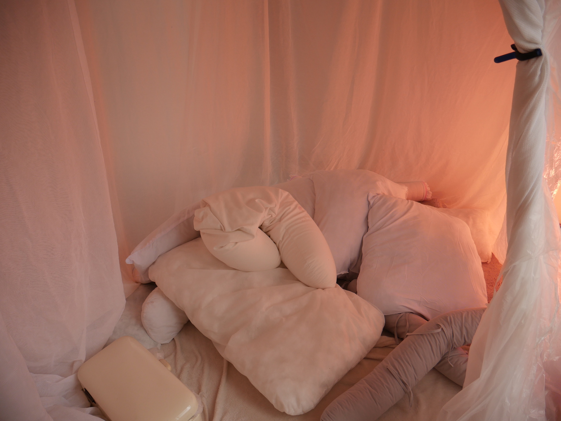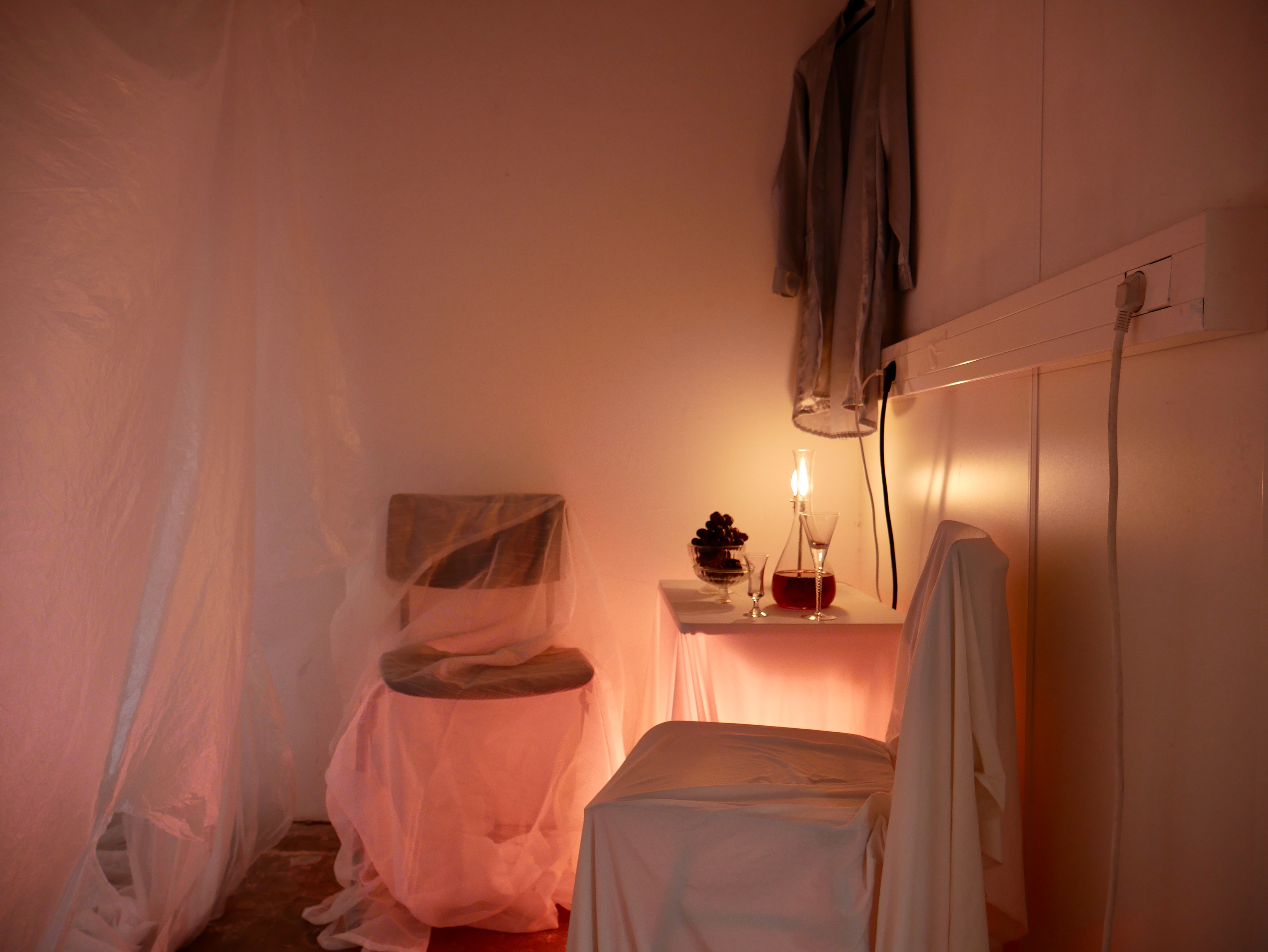 This project consists of two spaces. One is the exhibition area, where visitors encounter the sculpture itself. The other is the space where this collection was created, a room designed for comfort, privacy, and intimacy. As the scenographer, my role is to ensure this environment is carefully curated and nurturing. This space invites participants to step into a different world, free from outside judgments, allowing them to feel open, safe, and present. the role of SPACE is essential.