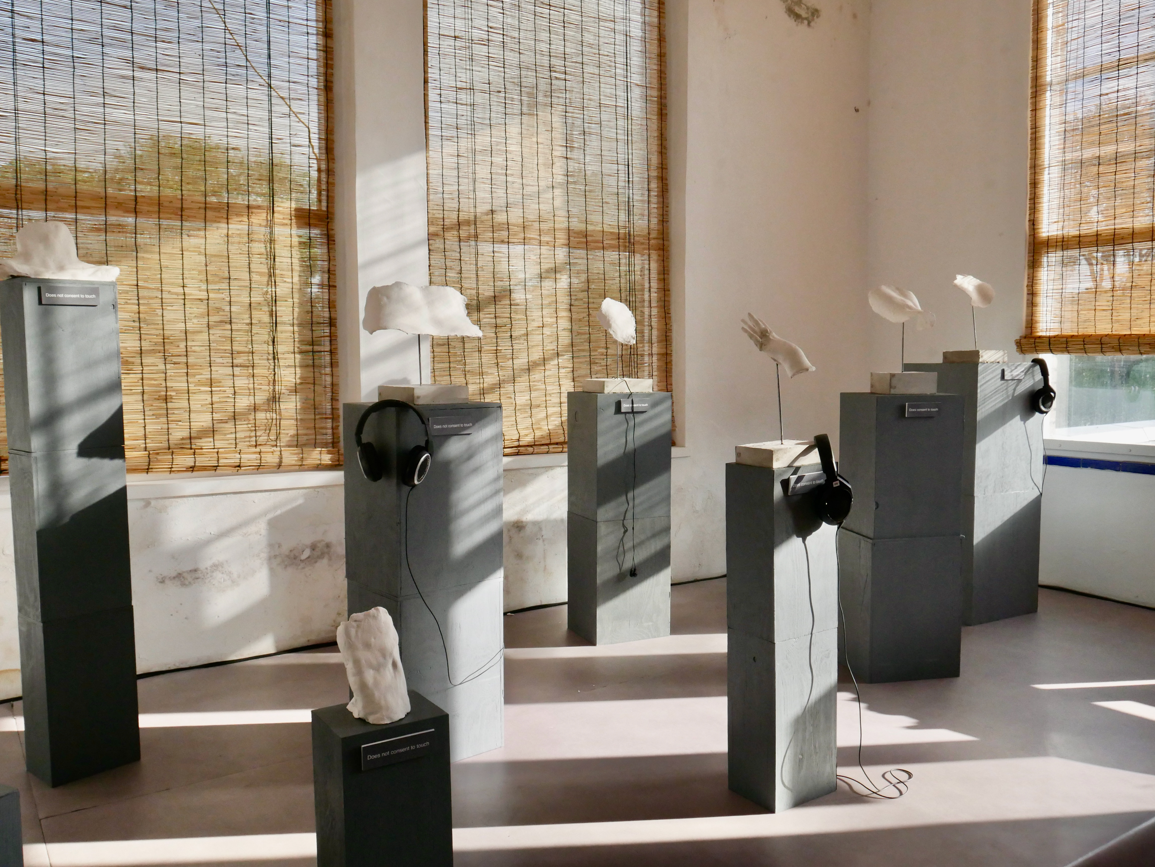 The resulting collection appears at first as a series of classical body casts, smooth, still, and sculptural. Yet when the viewer leans in, they hear voices: nervous laughter, confessions, and tender reflections about what makes that body part special. The contrast between the timeless stillness of the sculptures and the living, human stories they hold transforms the installation into a shared exploration of vulnerability.