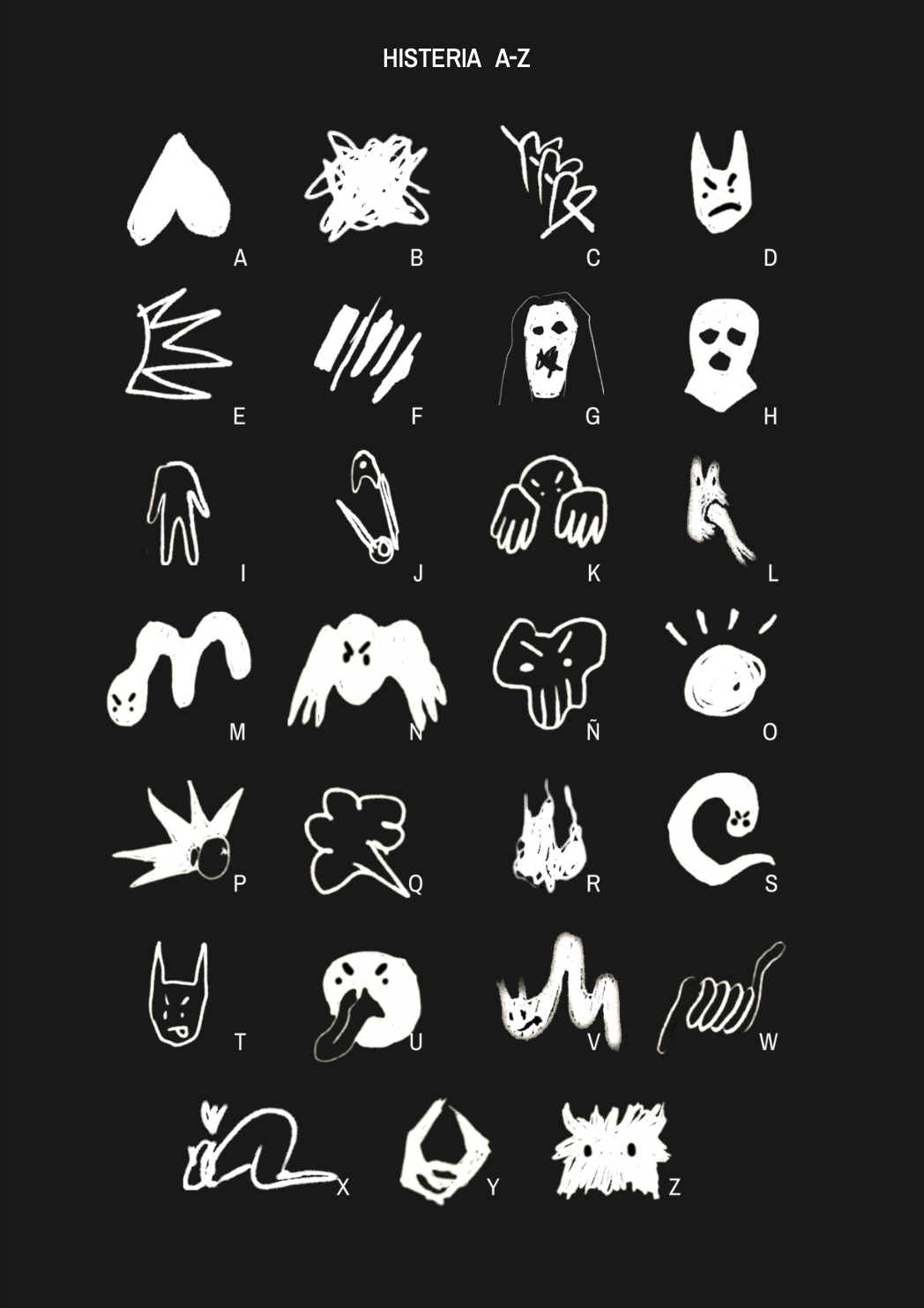 Typography hysteria, starts from a search in everyday language from a feminist point of view. It seeks to revalue the word hysteria by giving a new message to what had previously been a "disease" diagnosed only to women.