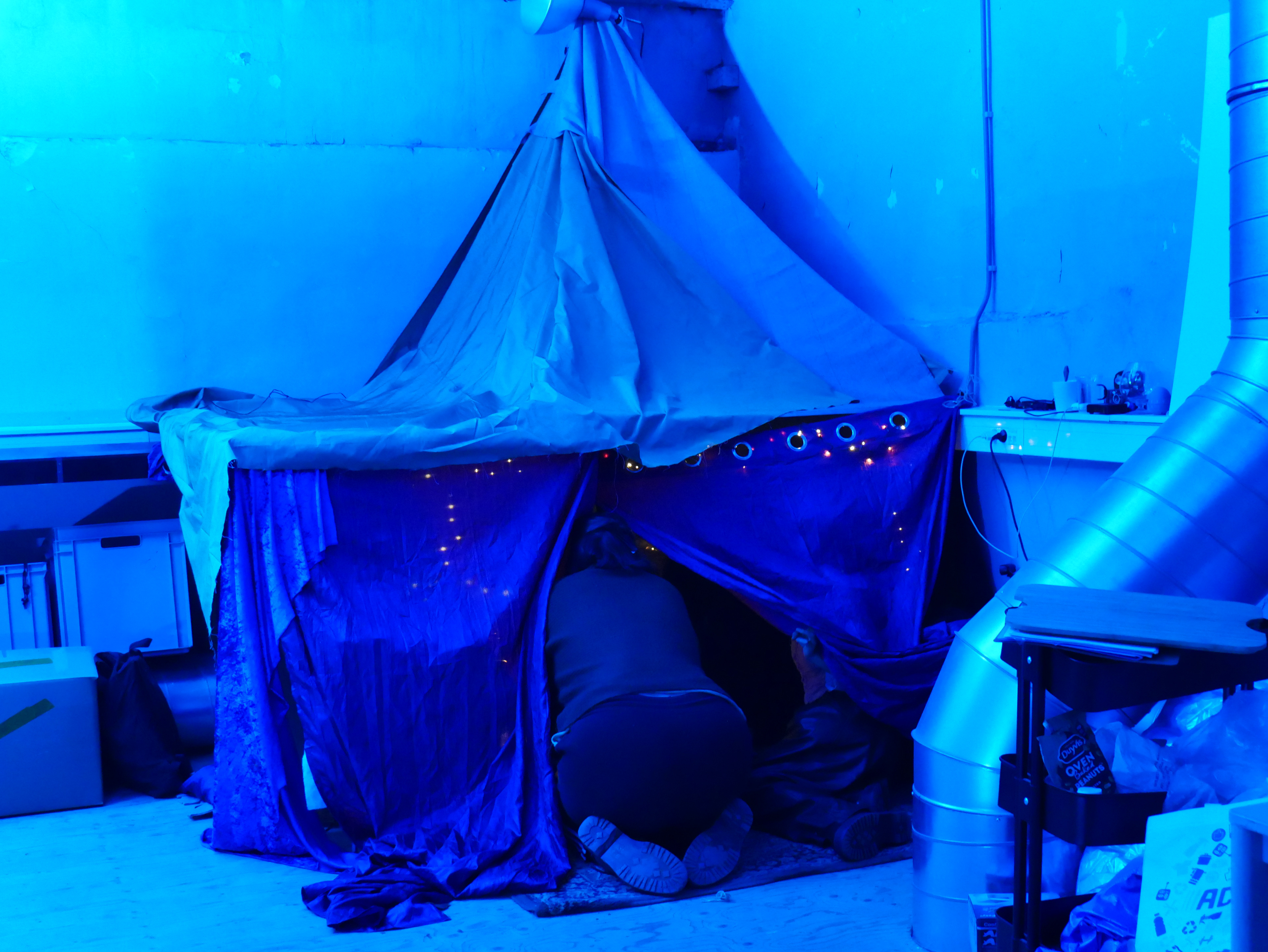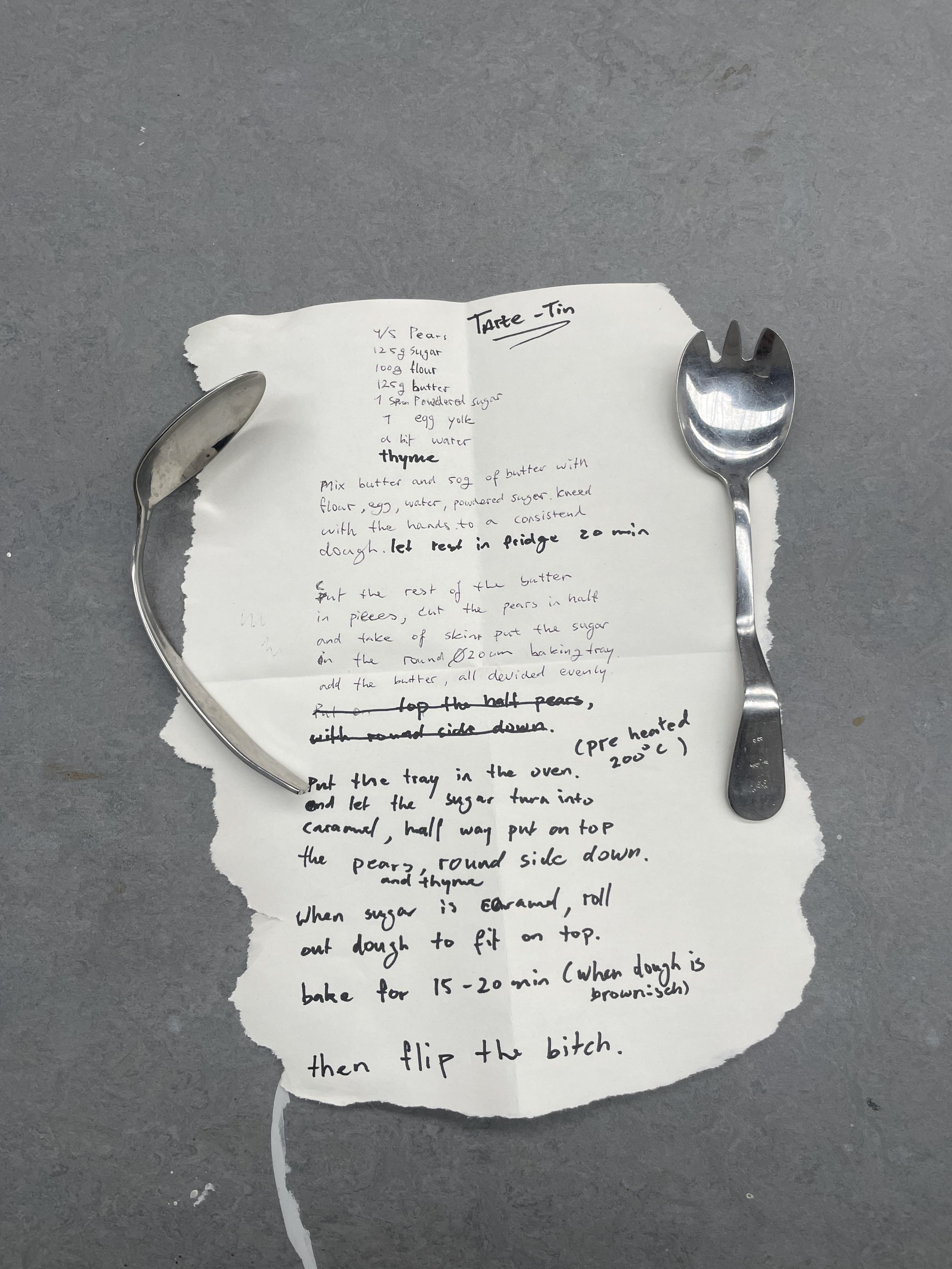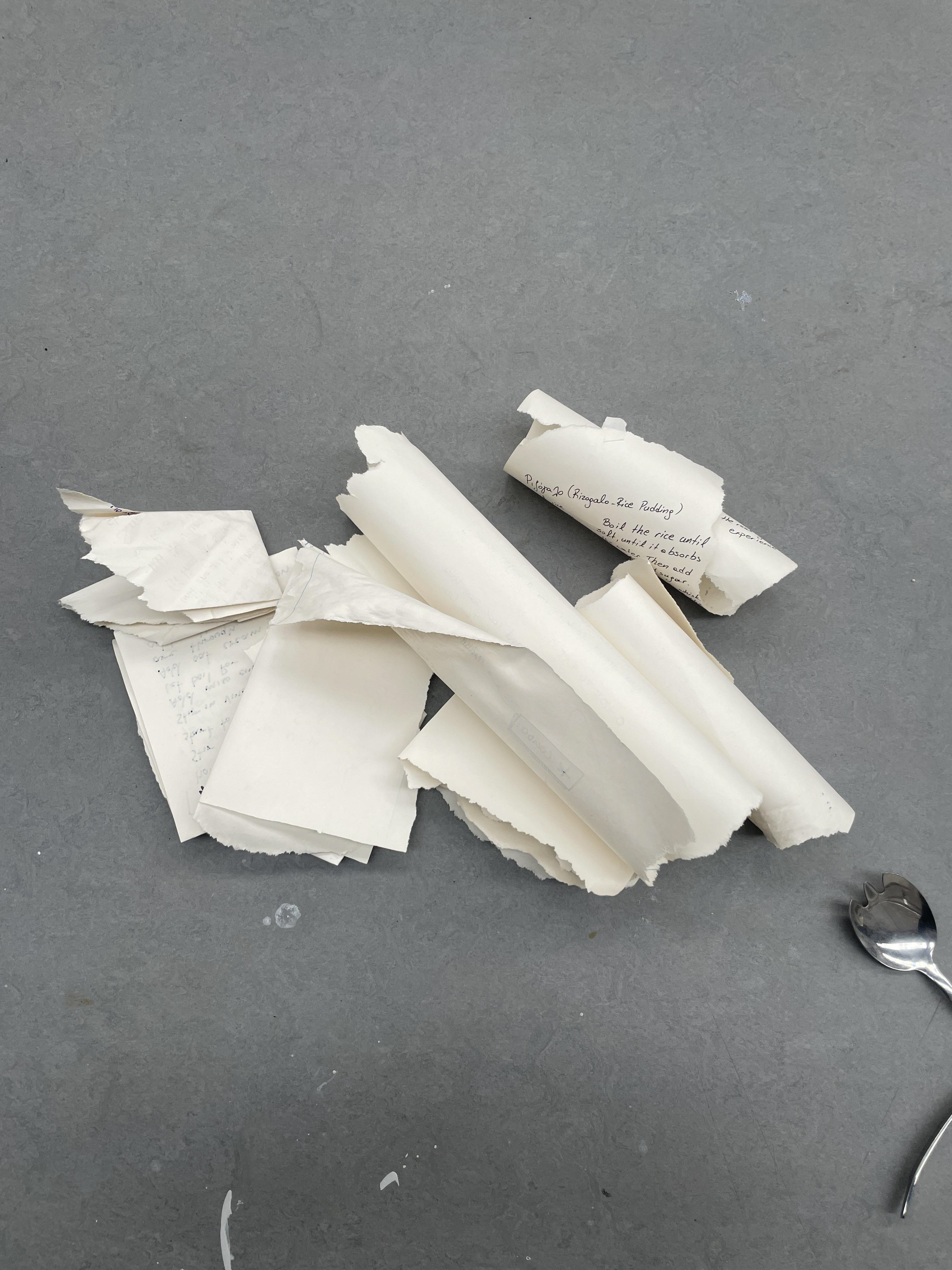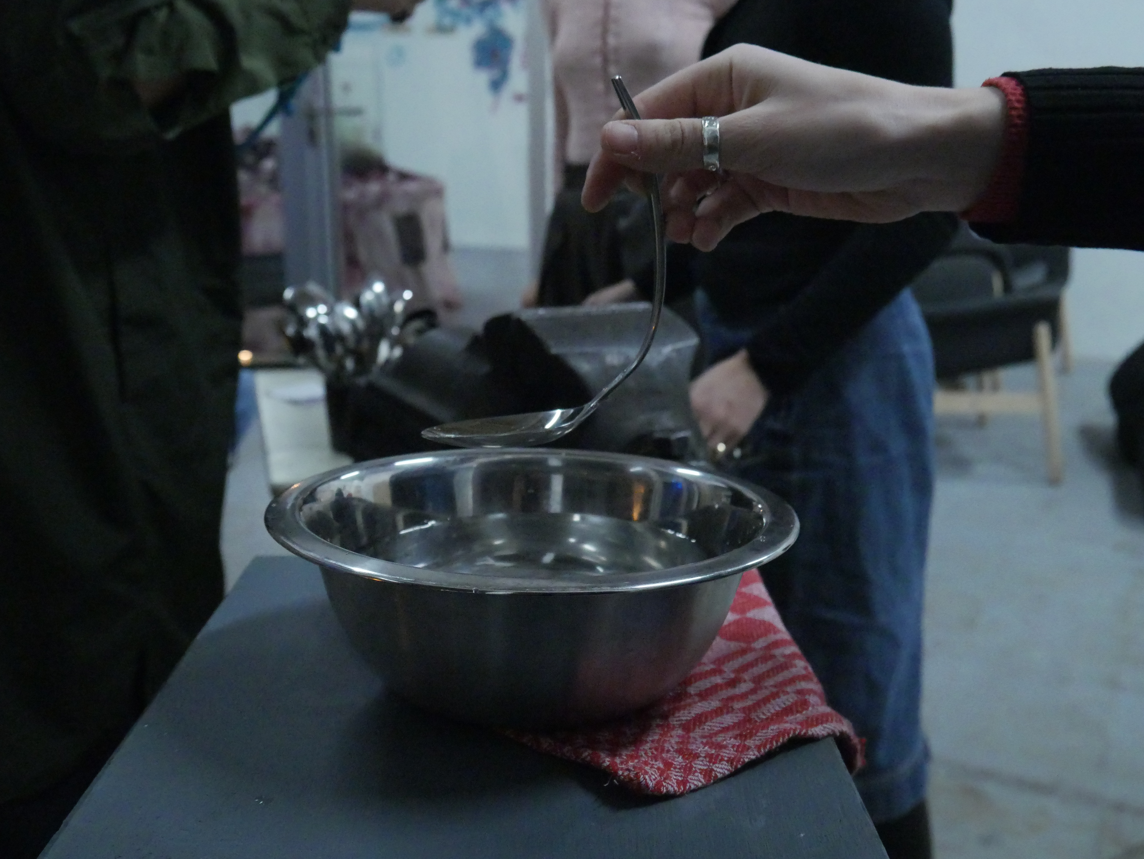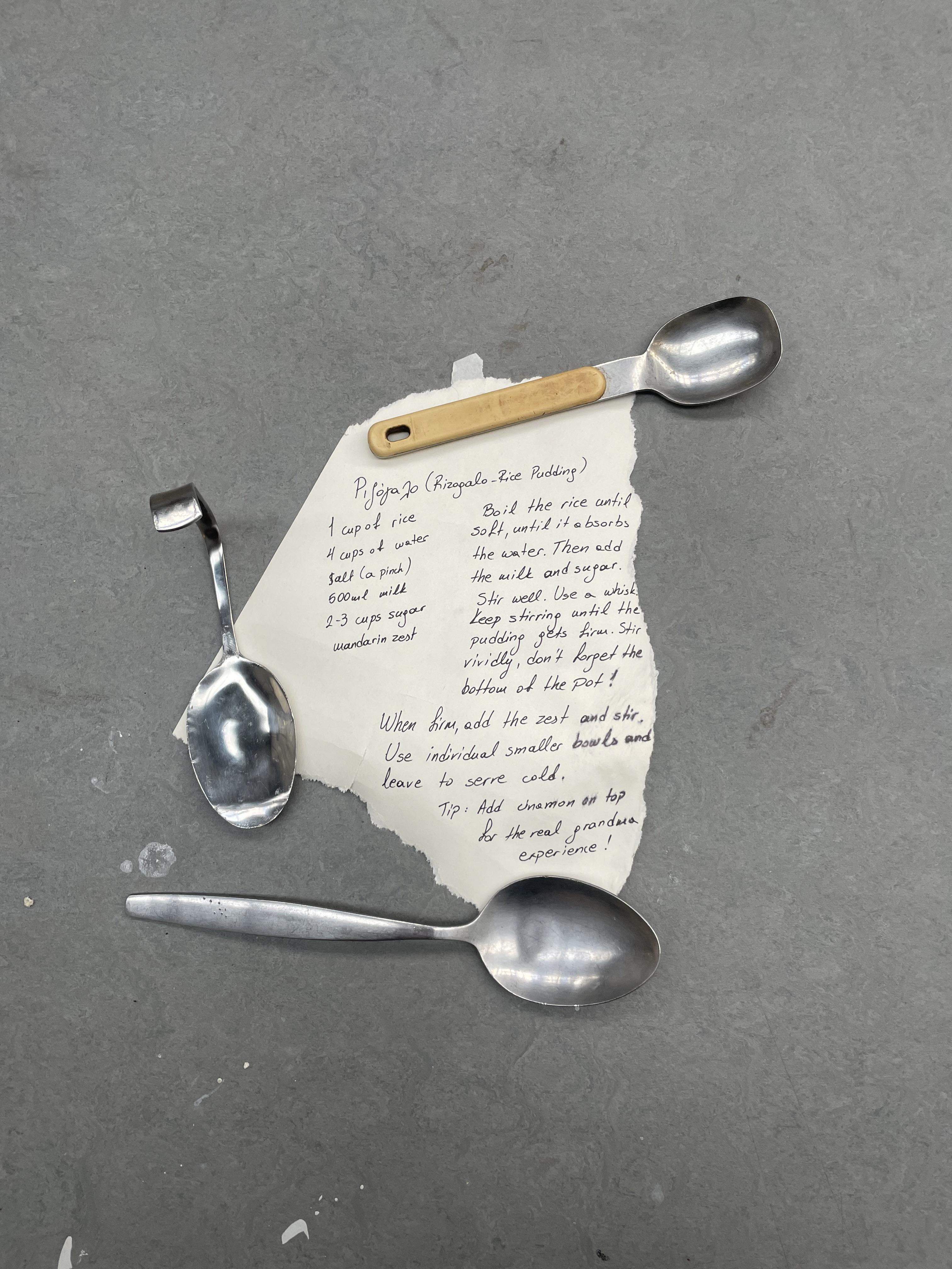 My personal installation invited participants to bring a spoon to leave in the space, a gesture of presence and memory. These spoons now form a communal sculpture that remains in the studio, used daily for lunches and dinners. Over time, this piece continues to grow, as each new generation of scenographers adds their own utensils, expanding the living archive of shared meals and moments.